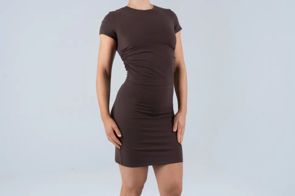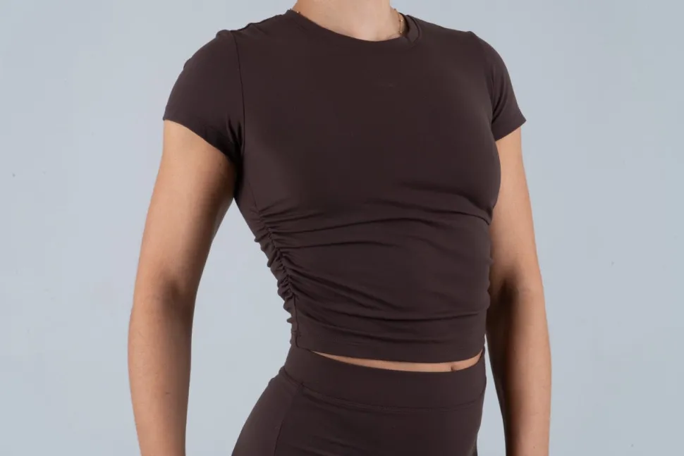 Super allsidig tank top med scrunch detalje på siden for silhuett. Har ikke bh under. Kun selve toppen. Passer over sportsbh eller alene.