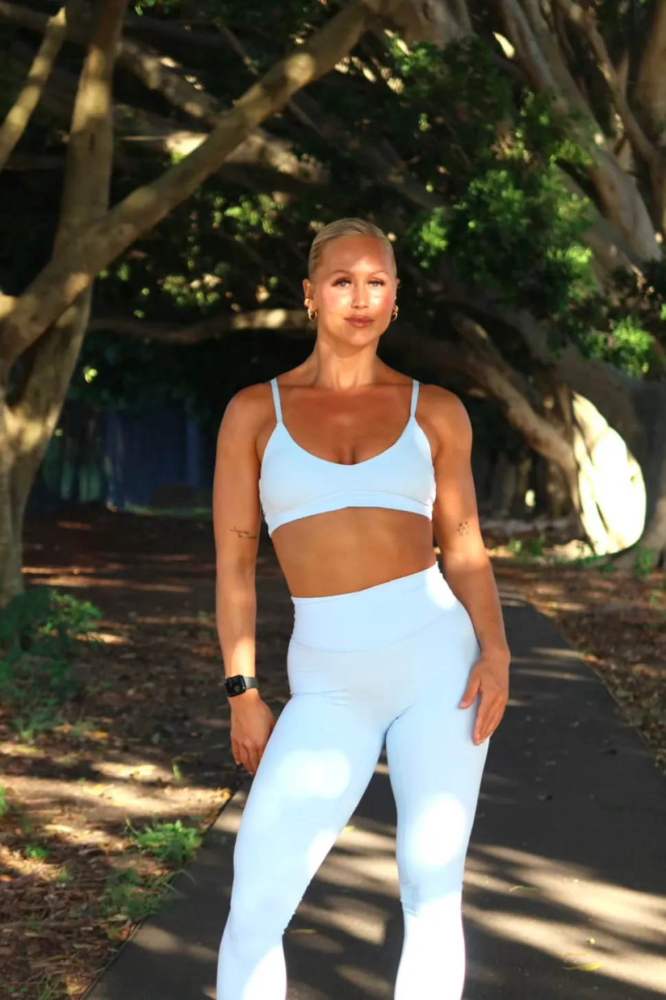 Størrelse:Modellen her har S, høyde 171 cm, og S i overdel. Er du mellom størrelser i tights kan du gå for den minste i denne modellen, kan oppleves litt stor – midjebåndet på tightsen er videre/bredere – enn på yoga pants, som har smalere midje seksjon. Ønsker du modell lik yoga pant velg opule shape tights.