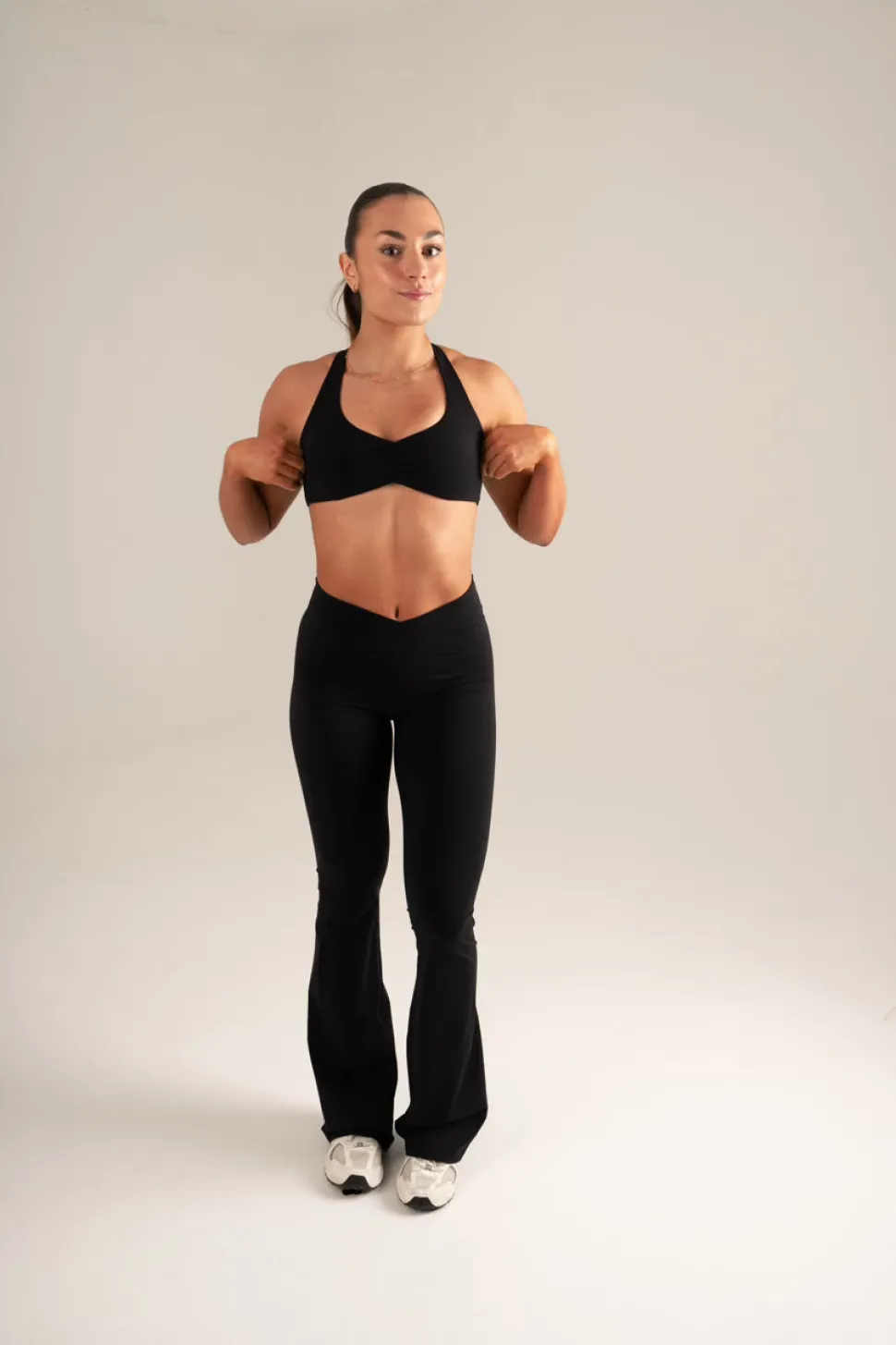 Alt du trenger i en flare yoga pant. Ingen søm foran. Wrap yoga er med scrunch (men sjekk vår modell uten om ønskelig). V design i front for super fin shape fasong.