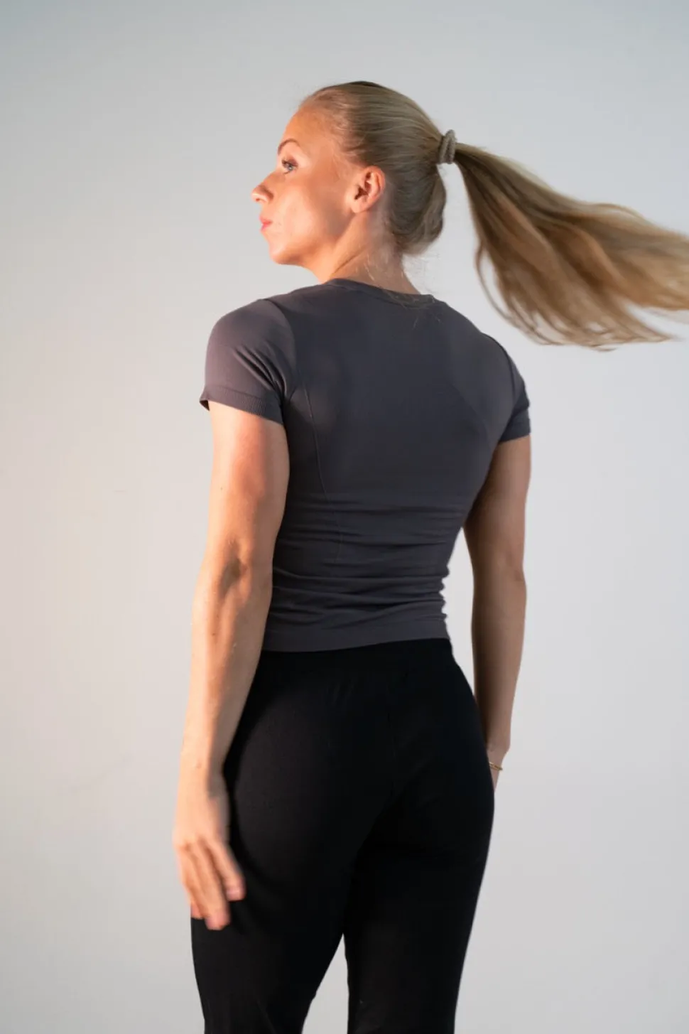 Info: Denne er kanskje vårt meststretchprodukt hittil. Svette absorberende og super fløyelsmyk kvalitet. Kommer i flere farger. Perfekt til allsidig trening. Vi er opptatt av å ha mange ulike størrelser – denne kommer derfor i S – XL. Den må virkelig prøves.Minimal logo i front. Fasongen er laget noe kort slik at du ikke får en lang overdel men heller ikke croppet, men en fin lengde over tights-kanten.